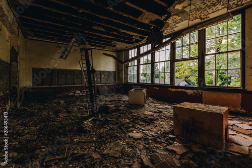 Derelict Classroom with Broken Windows - Abandoned Silver Creek School - New York