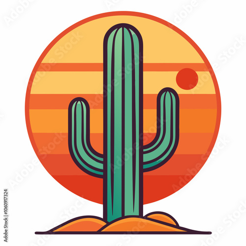 Desert cactus on retro vintage icon white background