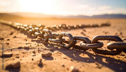 Desert Ground with Broken Chain Pieces Bathed in Subtle Sun Rays