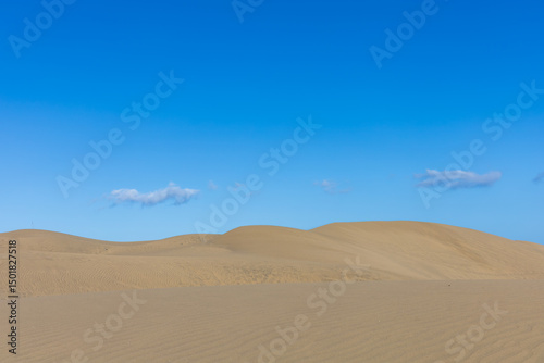 Desert landscape and sand dunes in Maspalomas. View of dunes and sea. Gran Canaria Island Spain