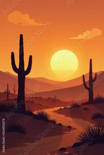 Desert landscape at sunset with silhouetted trees, brown, beige, nature