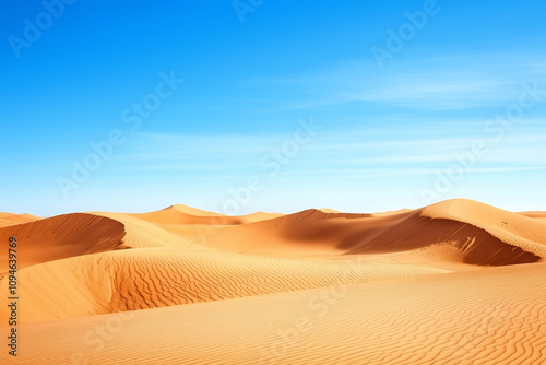 Desert landscape features a clear blue sky, showcasing natures untouched beauty. Generative AI