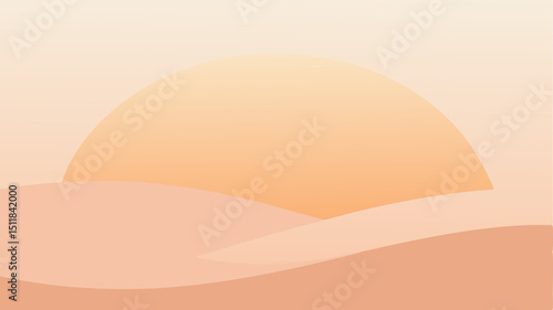Desert landscape sunrise abstract illustration minimalist design in warm orange tones