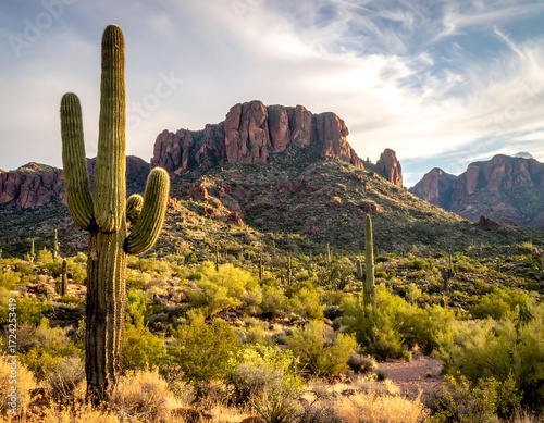 Desert landscape with saguaro cactus