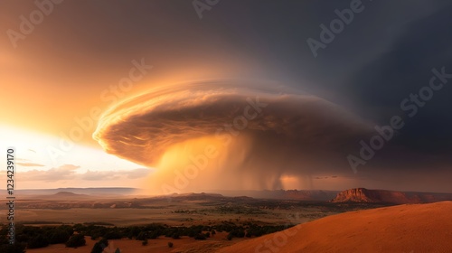 Desert Storm Sunset with Golden Clouds