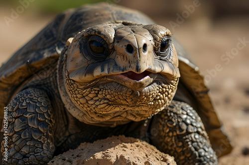 Desert Tortoise Headshot with Ancient Features and Textured Shell