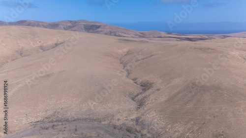 Desert Track Through Volcanic Hills Under Clear Sky – Remote Arid Landscape