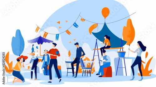 Design a cheerful gathering for Cinco de Mayo with vibrant decorations and joyful activity seen from a low angle, allowing for ample copy space against a lively background