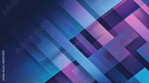 Design a horizontal static abstract background with geometric shapes in shades of blue and purple, reflecting