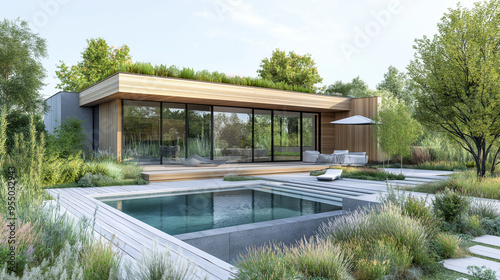 Design a modern, eco-friendly home with a minimalist approach, covering an area of 150 square meters. The house should be self-sufficient, featuring innovative sustainable technologies.