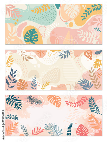 Design banner frame flower Spring background with beautiful. flower background for design. Colorful background with tropical plants. Place for your text.