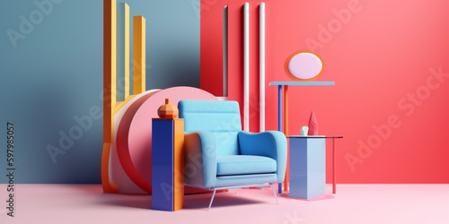 design colourful room apartment interior sofa geometric art memphis home armchair. Generative AI. Generative AI