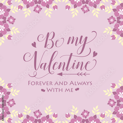 Design elegant card happy valentine, with cute pink floral frame. Vector