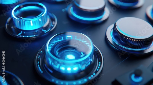 design of a centered icon with frosted glass and simple structure, transparent blue and white in a dark background