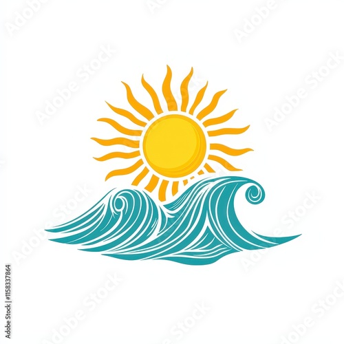 Design of sun over sea waves icon logo illustration isolated on white background