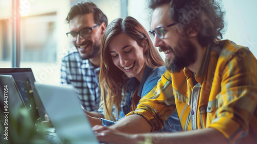 Design professionals using a laptop together in an office