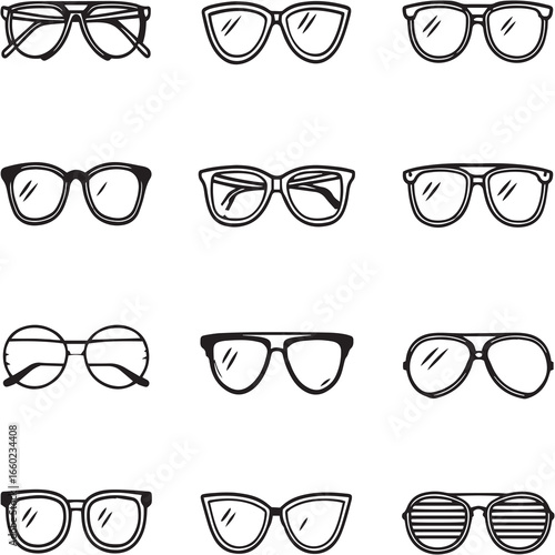 Designer Sunglasses black Line Editable Icons set