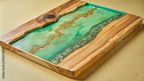 Designer tabletop inlaid with colored epoxy resin, natural wood texture
