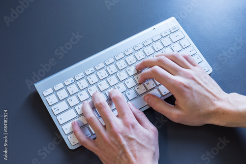 Designtastatur, Männerhände beim Schreiben, Nahaufnahme