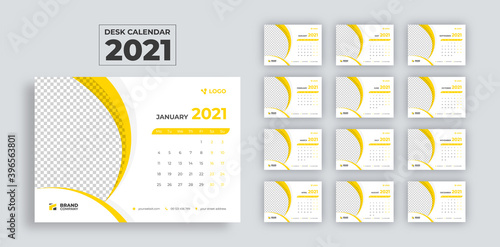 desk calendar 2021 with creative professional yellow abstract minimal template design