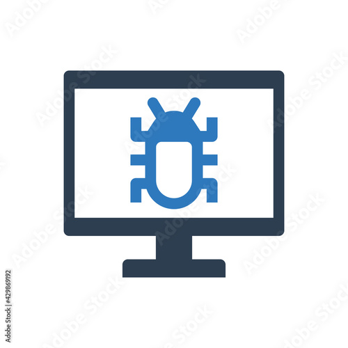 Desktop Computer Infected Virus Icon Malware And Bug Sign Symbol