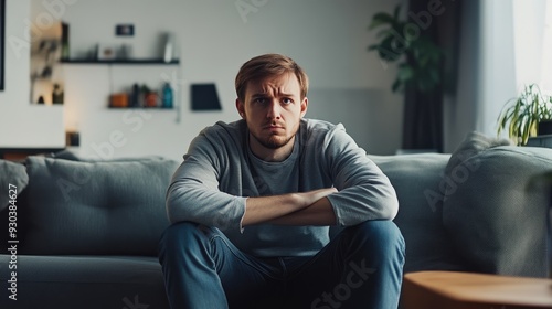 Despondent Man Reclining on Sofa, Lost in Thoughtful Sadness