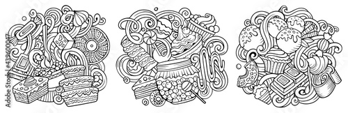 Desserts cartoon vector doodle designs set.