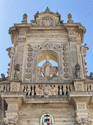 Detail of baroque façade of Lecce Duomo in Puglia, Italy
