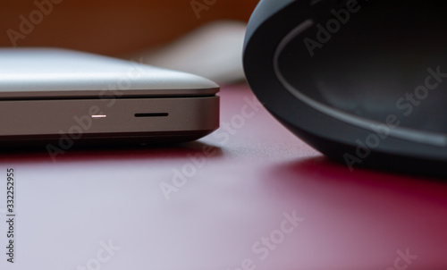 Detailaufnahme eines Laptop und einer Maus