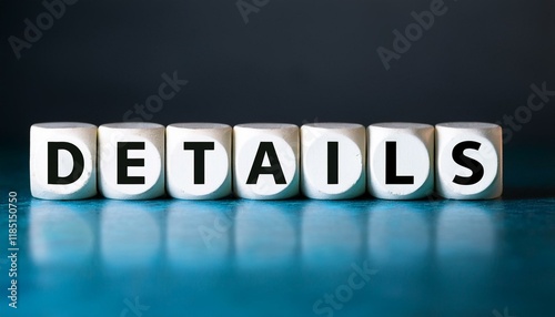 英語のフレーズDETAILDSの文字が書かれた光るキューブブロック。内容の詳細を説明するためのフレーズ。 aiで生成