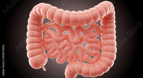 Detailed 3 D Rendering Of The Human Digestive System On A Dark Background