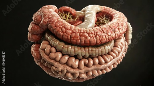 Detailed 3D Render of Human Digestive System Anatomy: Intestines, Stomach, and Organs