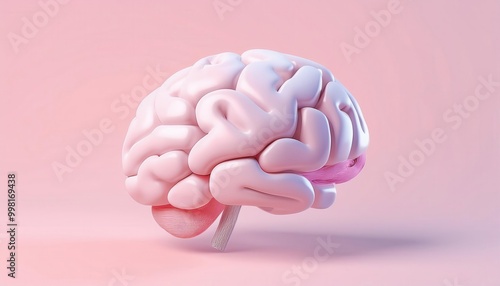 Detailed 3D Render of the Human Brain Showing the Cerebrum Cerebellum Gray and White Matter Neurons and Synapses in a Vibrant Pink and Purple Gradient Background