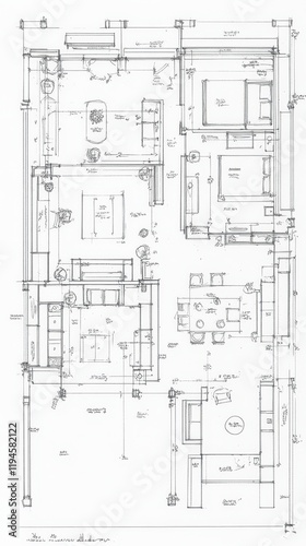 Detailed Architectural Blueprint of a Modern House Design Plan Sketch