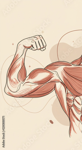 Detailed Biceps Muscle Anatomy Illustration Strength Training Fitness Stock Image