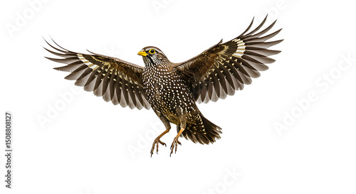 Detailed Bird in Flight with Spotted Plumage and Extended Wingspan