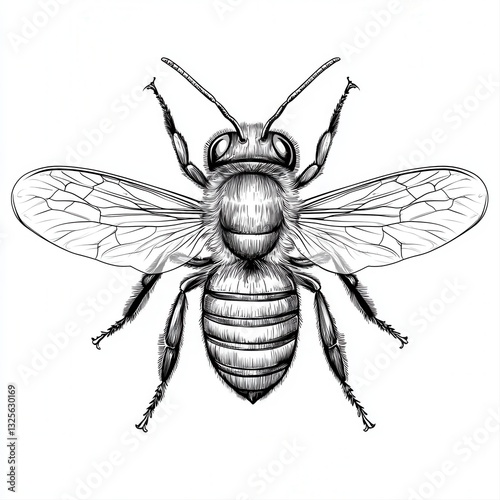 Detailed Black And White Bee Illustration
