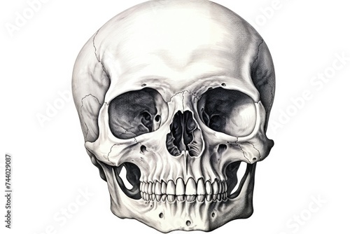 Detailed black and white drawing of a human skull. Suitable for medical or educational purposes