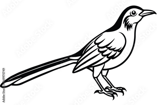 Detailed Black and White Line Art Illustration of a Mockingbird in Profile View