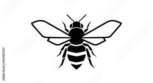 Detailed Black and White Vector Graphic of a Bee with Spread Wings Isolated on a Clean Background