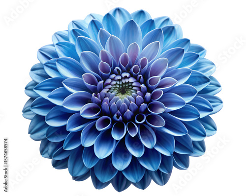Detailed Blue Dahlia Flower Close Up on Transparent Background