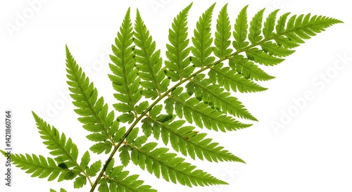 Detailed Botanical Real Shot of Fern Athyrium Filixfemina Focusing on Frond Details Isolated on White Background in High Resolution