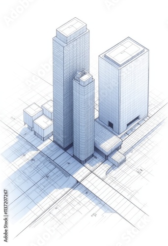 Detailed Building Schematics: Wireframe City Buildings for Engineering Plans and CAD Drawings