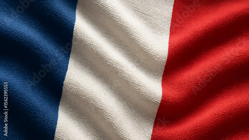 Detailed close up of a luxurious textured french flag, emphasizing the fabric weave, ideal for Bastille Day visuals