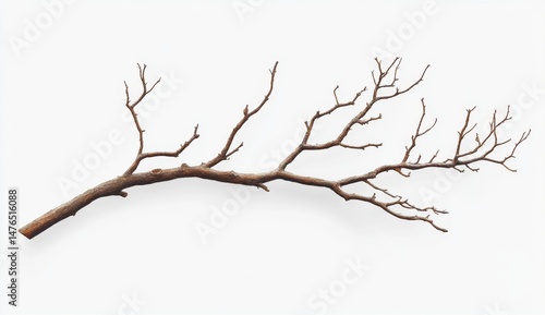 Detailed Close Up of a Single Bare Brown Tree Branch Against White Background