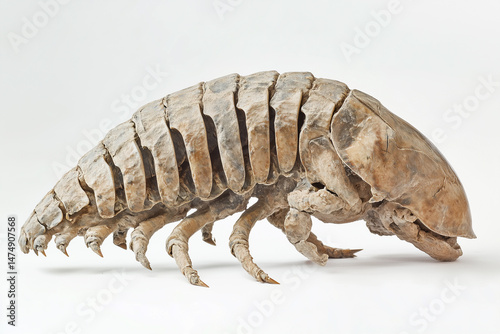 Detailed Close Up Of A Tan Segmented Insect On A White Background