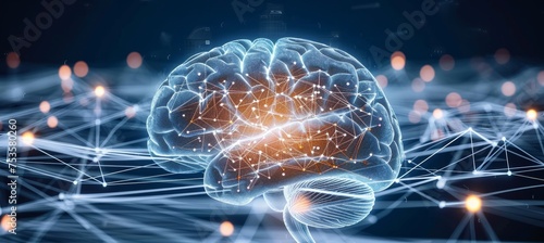Detailed close up of human brain showing neurons firing and neural extensions in action
