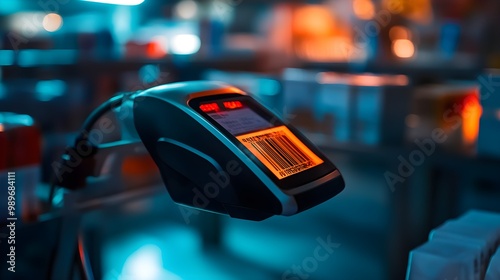 Detailed close-up of a barcode scanner scanning product codes, highlighting its role in maintaining accuracy, inventory management, and quality control