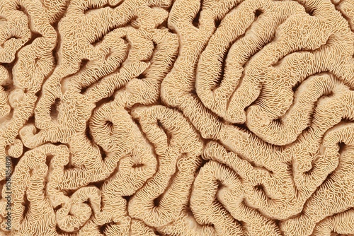 Detailed close-up of a brain, highlighting its intricate and complex structure. The textured surface displays a network of folds and crevices, emphasizing the depth and complexity of the organ