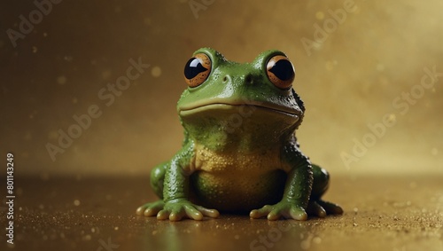 Detailed close-up of a green frog with a sparkling gold bokeh effect